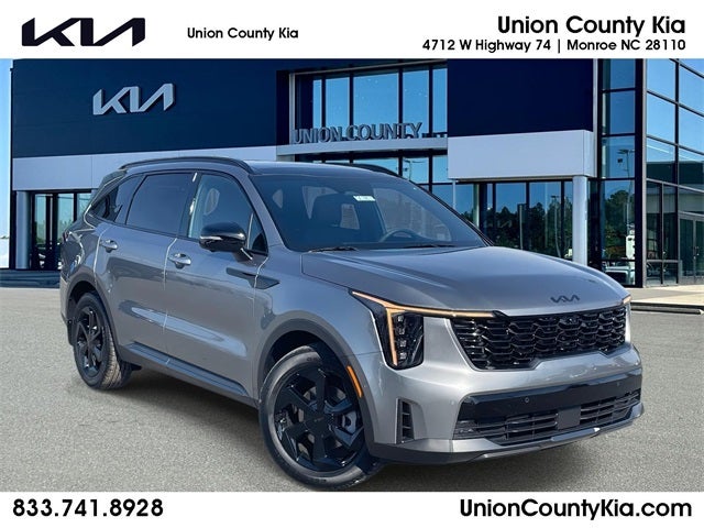 2026 Kia Sorento Hybrid X-Line SX Prestige Steel Gray Panoramic Roof, Apple CarPlay, Bluetooth®, Android Auto, Rear-Camera Display, Sorento Hybrid X-Line SX Prestige, 4D Sport Utility, AWD, 3rd row seats: split-bench, Power Liftgate, Power moonroof, 12 Speakers, 18 Black Alloy Wheels, 4-Wheel Disc Brakes, ABS brakes, Air Conditioning, AM/FM radio: SiriusXM, Apple CarPlay & Android Auto, Auto High-beam Headlights, Auto-dimming Rear-View mirror, Automatic temperature control, Brake assist, Bumpers: body-color, Delay-off headlights, Driver door bin, Driver vanity mirror, Dual front impact airbags, Dual front side impact airbags, Electronic Stability Control, Emergency communication system: 911 Connect, Exterior Parking Camera Rear, Four wheel independent suspension, Front anti-roll bar, Front Bucket Seats, Front Center Armrest, Front dual zone A/C, Front fog lights, Front reading lights, Fully automatic headlights, Garage door transmitter: HomeLink, Heated door mirrors, Heated front seats, Heated rear seats, Heated steering wheel, Illuminated entry, Knee airbag, Leather steering wheel, Low tire pressure warning, Memory seat, Navigation System, Occupant sensing airbag, Outside temperature display, Overhead airbag, Overhead console, Panic alarm, Passenger door bin, Passenger vanity mirror, Perforated Genuine Leather Seat Trim, Power door mirrors, Power driver seat, Power passenger seat, Power steering, Power windows, Radio data system, Radio: AM/FM/SiriusXM Audio System, Rain sensing wipers, Rear anti-roll bar, Rear reading lights, Rear side impact airbag, Rear window defroster, Rear window wiper, Remote keyless entry, Security system, Speed control, Speed-sensing steering, Split folding rear seat, Spoiler, Steering wheel mounted audio controls, Tachometer, Telescoping steering wheel, Tilt steering wheel, Traction control, Trip computer, Turn signal indicator mirrors, Variably intermittent wipers, Ventilated front seats, Wheels: 19 Machine-Finished Aero Alloy, Sorento Hybrid X-Line SX Prestige, 4D Sport Utility, AWD, 3rd row seats: split-bench, Power Liftgate, Power moonroof. 32/35 City/Highway MPG