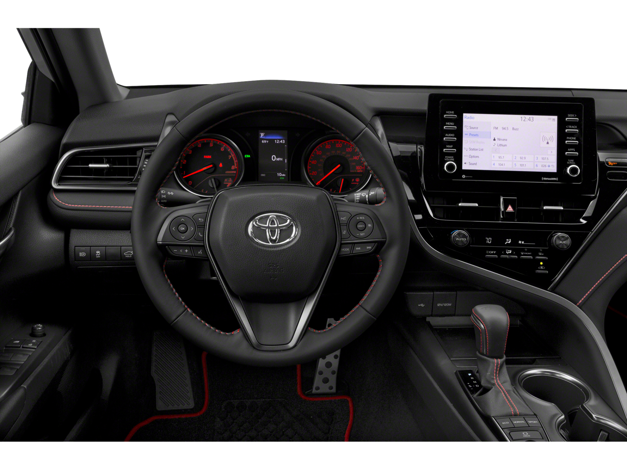 Apple CarPlay, Bluetooth®, Android Auto, 4D Sedan, Black/Red w/Fabric Seat Trim w/Sport SofTex, ABS brakes, Active Cruise Control, Electronic Stability Control, Exterior Parking Camera Rear, Heated door mirrors, Illuminated entry, Low tire pressure warning, Remote keyless entry, Traction control, Wheels: 8.5J x 19 TRD Matte Black Alloy. CARFAX One-Owner. Clean CARFAX.