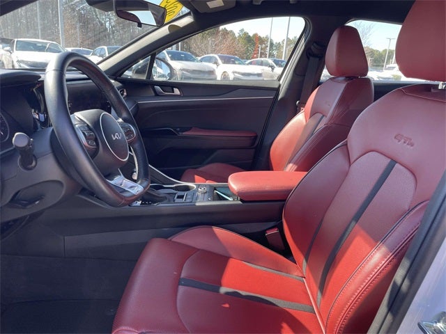 Certified. **CARFAX CERTIFIED, Kia Certified Pre-Owned, Local Trade, Apple CarPlay, Bluetooth®, Android Auto, Rear-Camera Display, K5 GT-Line, Kia Certified Pre-Owned Certified, 4D Sedan, Glacial White Pearl, Forward Collision Avoidance-Assist, GT-Line Premium Package, GT-Line Red Interior Package, Highway Driving Assist, LED Projection Headlamps, Smart Cruise Control w/Stop & Go, Wheels: 18 Gloss Black Machined Finish Alloy, 4-Wheel Disc Brakes, 6 Speakers, ABS brakes, Air Conditioning, AM/FM radio: SiriusXM, Apple CarPlay & Android Auto, Auto High-beam Headlights, Automatic temperature control, Brake assist, Bumpers: body-color, Carpeted Floor Mats, Cloth/SynTex Seat Trim, Delay-off headlights, Driver door bin, Driver vanity mirror, Dual front impact airbags, Dual front side impact airbags, Electronic Stability Control, Four wheel independent suspension, Front anti-roll bar, Front Bucket Seats, Front Center Armrest, Front dual zone A/C, Front fog lights, Front reading lights, Fully automatic headlights, Heated door mirrors, Illuminated entry, Knee airbag, Low tire pressure warning, Navigation System, Occupant sensing airbag, Outside temperature display, Overhead airbag, Overhead console, Panic alarm, Passenger door bin, Passenger vanity mirror, Power door mirrors, Power driver seat, Power steering, Power windows, Radio data system, Radio: AM/FM/MP3 Audio System, Rear anti-roll bar, Rear seat center armrest, Rear side impact airbag, Rear window defroster, Remote keyless entry, Security system, Speed control, Speed-sensing steering, Split folding rear seat, Spoiler, Sport steering wheel, Steering wheel mounted audio controls, Tachometer, Telescoping steering wheel, Tilt steering wheel, Traction control, Trip computer, Turn signal indicator mirrors, Variably intermittent wipers, K5 GT-Line, 4D Sedan, Glacial White Pearl, Forward Collision Avoidance-Assist, GT-Line Premium Package, GT-Line Red Interior Package, Highway Driving Assist, LED Projection Headlamps, Smart Cruise Control w/Stop & Go, Wheels: 18 Gloss Black Machined Finish Alloy. CARFAX One-Owner.